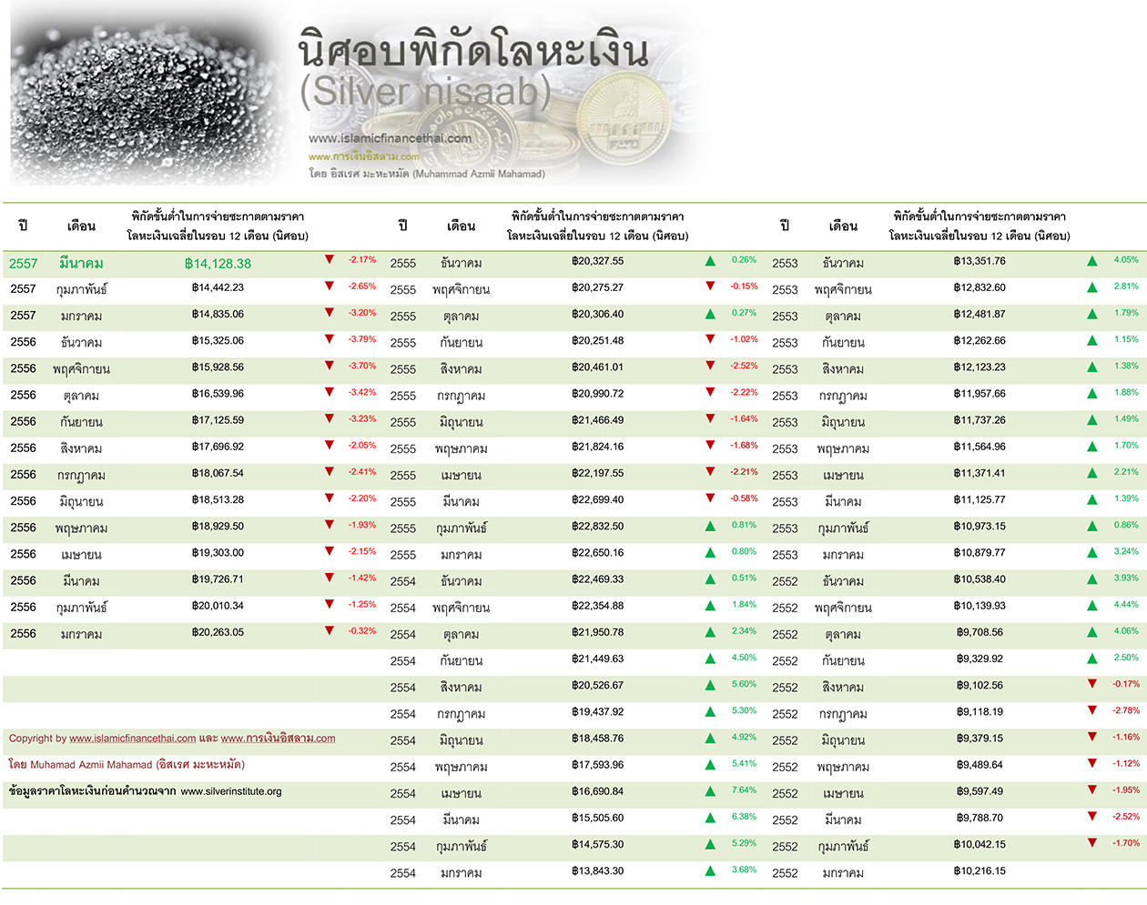 Silver Nisaab Posted on April 1, 2014 by Isares Mahamad(Muhammad Azmii) Leave a comment Share this: Share on X (Opens in new window) X Share on Facebook (Opens in new window) Facebook Print (Opens in new window) Print Like Loading... Related ซะกาต(Zakat)