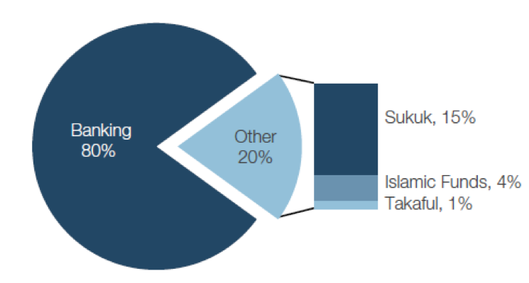 จากมูลค่าสินทรัพย์รวมของระบบการเงินอิสลาม(Islamic Financial System) 1.8 ล้านล้านเหรียญดอลล่าสหรัฐ ในปี 2013 อันดับหนึ่งมาจากมูลค่าสินทรัพย์ของระบบธนาคารอิสลาม(Islamic Banking) 80 % หรือประมาณ 1.44 ล้านล้านเหรียญดอลล่าสหรัฐ อันดับที่สอง มูลค่าจากพันธบัตรอิสลามหรือตราสารศุกูก(Sukuk) 15% หรือประมาณ 0.27 ล้านล้านเหรียญดอลล่าสหรัฐ อันดับที่สาม มูลค่าจากกองทุนอิสลาม(Islamic Funds) 4 % หรือประมาณ 0.072 ล้านล้านเหรียญดอลล่าสหรัฐ และสุดท้ายมูลค่าจากระบบการประกันภัยแบบอิสลามหรือตะกาฟูล 1 % หรือประมาณ 0.018 ล้านล้านเหรียญดอลล่าสหรัฐ