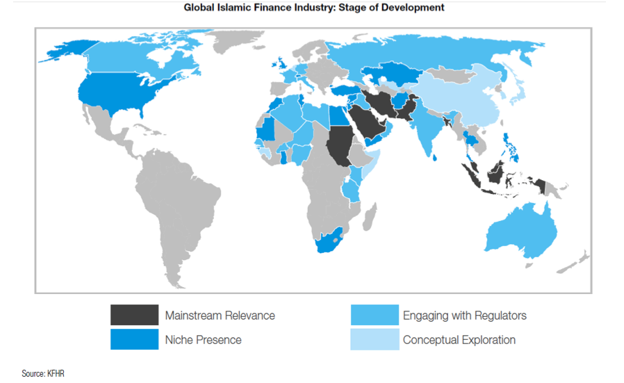 ในปี 2013 ที่ผ่านมาระบบการเงินอิสลามยังคงมีการพัฒนาในหลายๆประเทศ อย่างต่อเนื่อง จากรูปภาพจะเห็นว่าประเทศที่แกนหลักของระบบการเงินอิสลามนั้น ส่วนใหญ่จะอยู่ในประเทศแถบตะวันออกกลาง แอฟริกา และเอเชียตะวันออกเฉียงใต้ จากแผนที่โลกข้างต้นจะเห็นได้ว่ามีประเทศมากกว่าครึ่งโลกที่เข้ามามีส่วนร่วมกับระบบการเงินอิสลาม มิใช่จำกัดอยู่เฉพาะเพียงแต่ในเฉพาะประเทศมุสลิมเท่านั้น