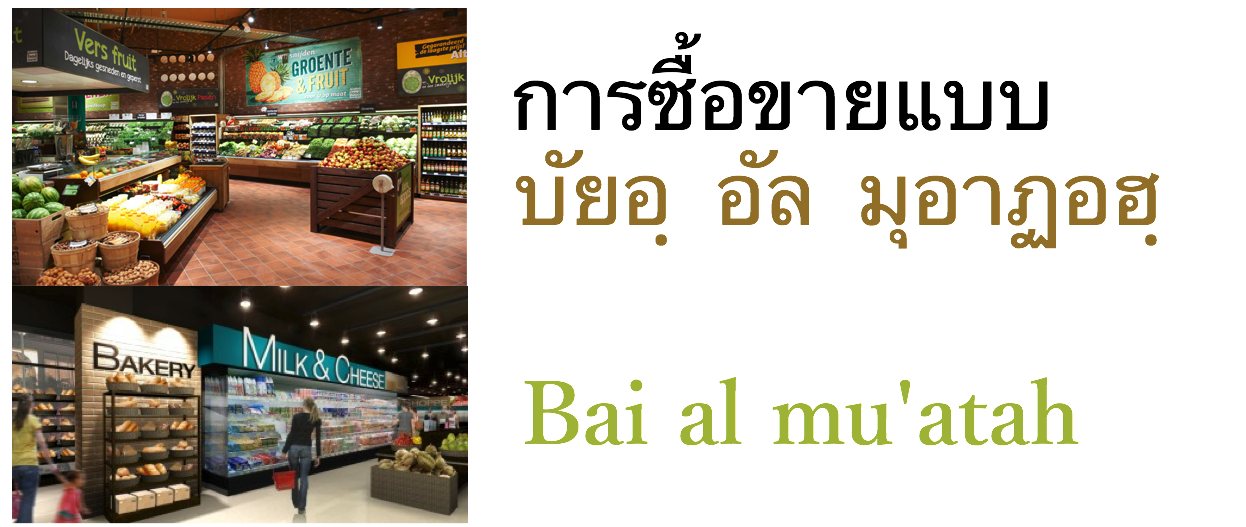บัยอฺ อัล มุอาฏอฮฺ (Bai al mu’ atah) มีการโชว์สินค้า(Invitation to treat) พร้อมด้วยป้ายราคา การเสนอขาย (Ijab) และ การสนองรับ(Qabuul) ด้วยกับการกระทำการที่ผู้ซื้อนำเงินมาจ่ายเท่ากับป้ายราคาของสินค้าที่ต้องการจะซื้อตามป้ายราคาของสินค้านั้นๆ ที่จุดชำระเงิน และการซื้อขายเกิดขึ้นเมื่อมีการชำระเงินเรียบร้อยแล้ว