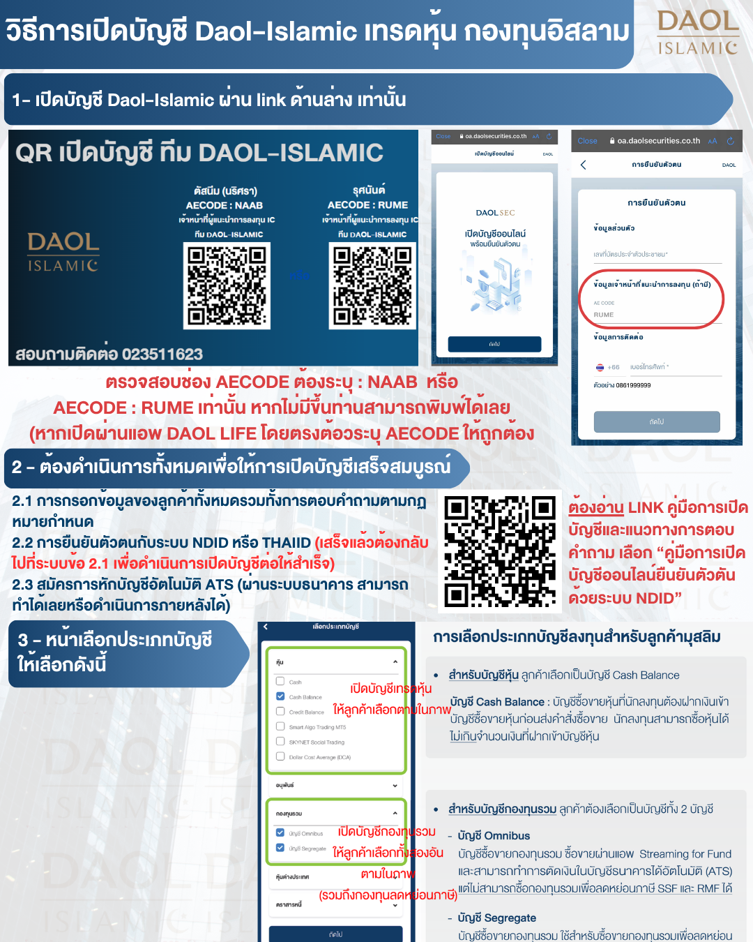 ✅ลิ้งค์เปิดบัญชีออนไลน์สำหรับลูกค้ามุสลิม ***ต้องเปิด หรือ คัดลอกจากลิงค์ด้านล่างเท่านั้น*** ห้ามสมัครผ่าน app DAOL-life โดยตรงโดยไม่ระบุ AEcode จะไม่ได้เข้า DAOL-islamic *** หากสมัครผ่าน app DAOL-life โดยตรงต้องใส่ AE CODE ต้องระบุ เป็น RUME หรือ NAAB เท่านั้น เพื่อเปิดบัญชี DAOL-islamic*** หากท่านไม่ได้ระบุ AECODE จะต้องเสียเวลาในการทำการโอนย้ายและไม่สามารถตรวจสอบหุ้นฮาลาลได้